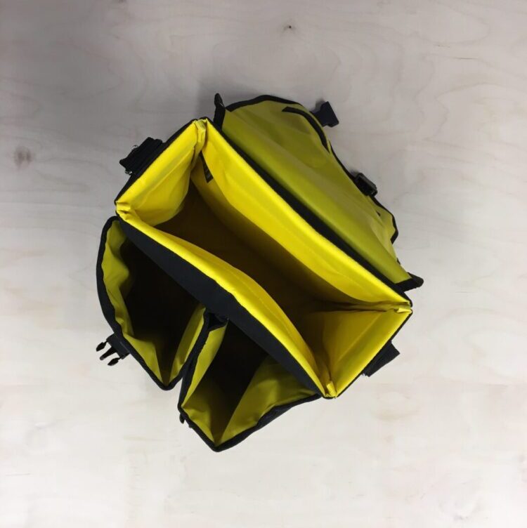 3-osainen mastolaukku: musta, keltainen sisus.